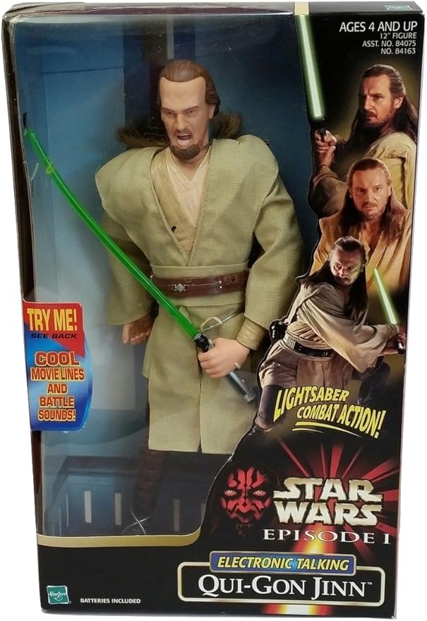Amazon Com Star Wars Episode 1 Electronic Talking Qui Gon Jinn Figure Toys Games