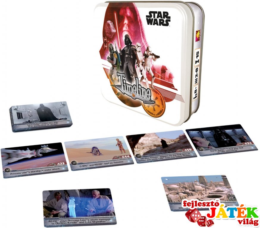 Timeline - Star Wars trsasjtk Tedd prbra magad s a Star Wars filmekkel kapcsolatos tudsodat. A Timeline Idővonal egy klnleges kvzjtk amelyben a trtnetet egy idővonal segtsgvel kell tltnotok. A Timeline Star Wars jtk stlusos fm dobozban rkezik hozzd az Star Wars IV V VI filmek felejthetetlen jeleneteit brzol.